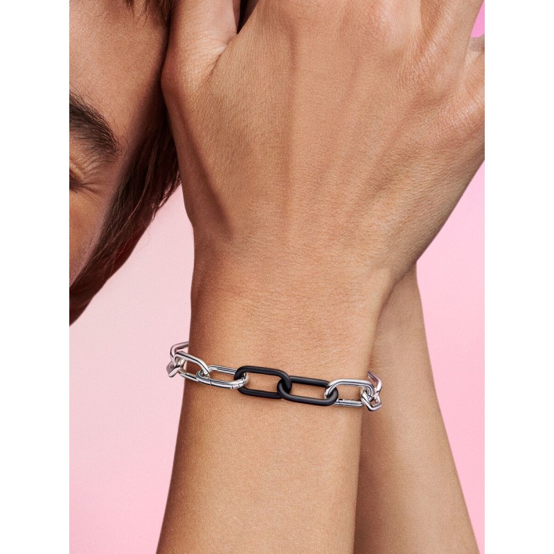 Dale un toque de color atrevido a tu cadena de eslabones con este Link Doble en Cerámica Negra Mate Pandora ME. Está formado por dos links de cerámica maciza entrelazados. Tienes que añadirlo entre eslabones que se pueden abrir, ya que estos links dobles no se abren.
