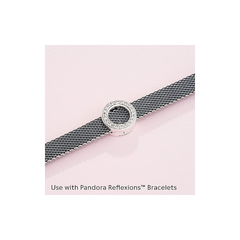 Charm Pandora REFLEXIONS Círculo en Pavé de plata de primera ley. El diseño reversible garantiza que puedas mostrar la parte delantera, adornado con unos detalles de circonitas cúbicas en pavé o bien, revelar la parte trasera lisa y pulida.