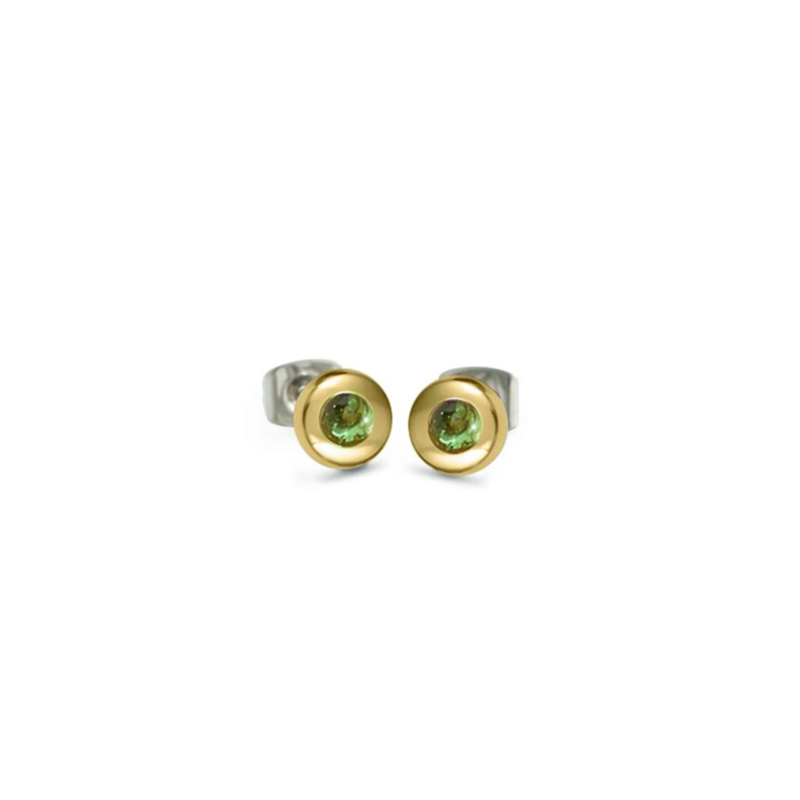 Pendientes de Titanio bañados en oro amarillo con turmalina verde.