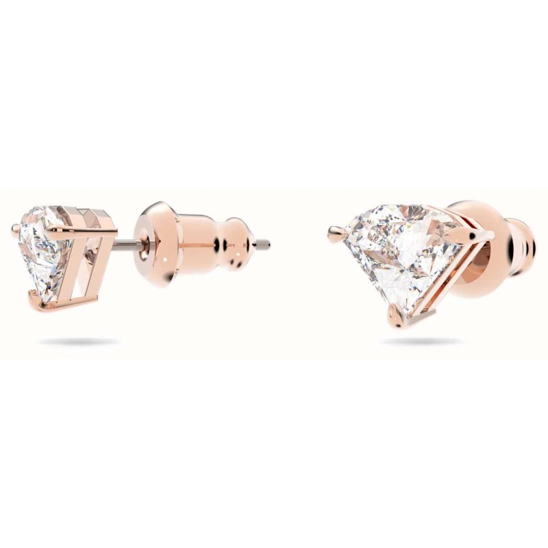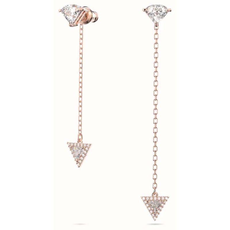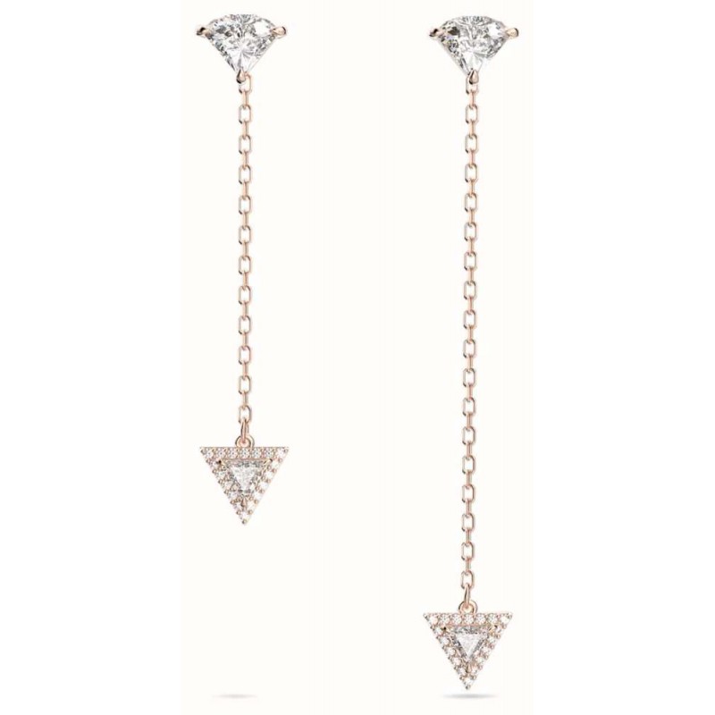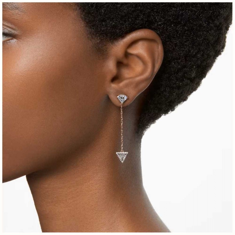 Este par de pendientes colgantes forma parte de la colección Ortyx de Swarovski. El metal utilizado en los pendientes está chapado en tono oro rosa.